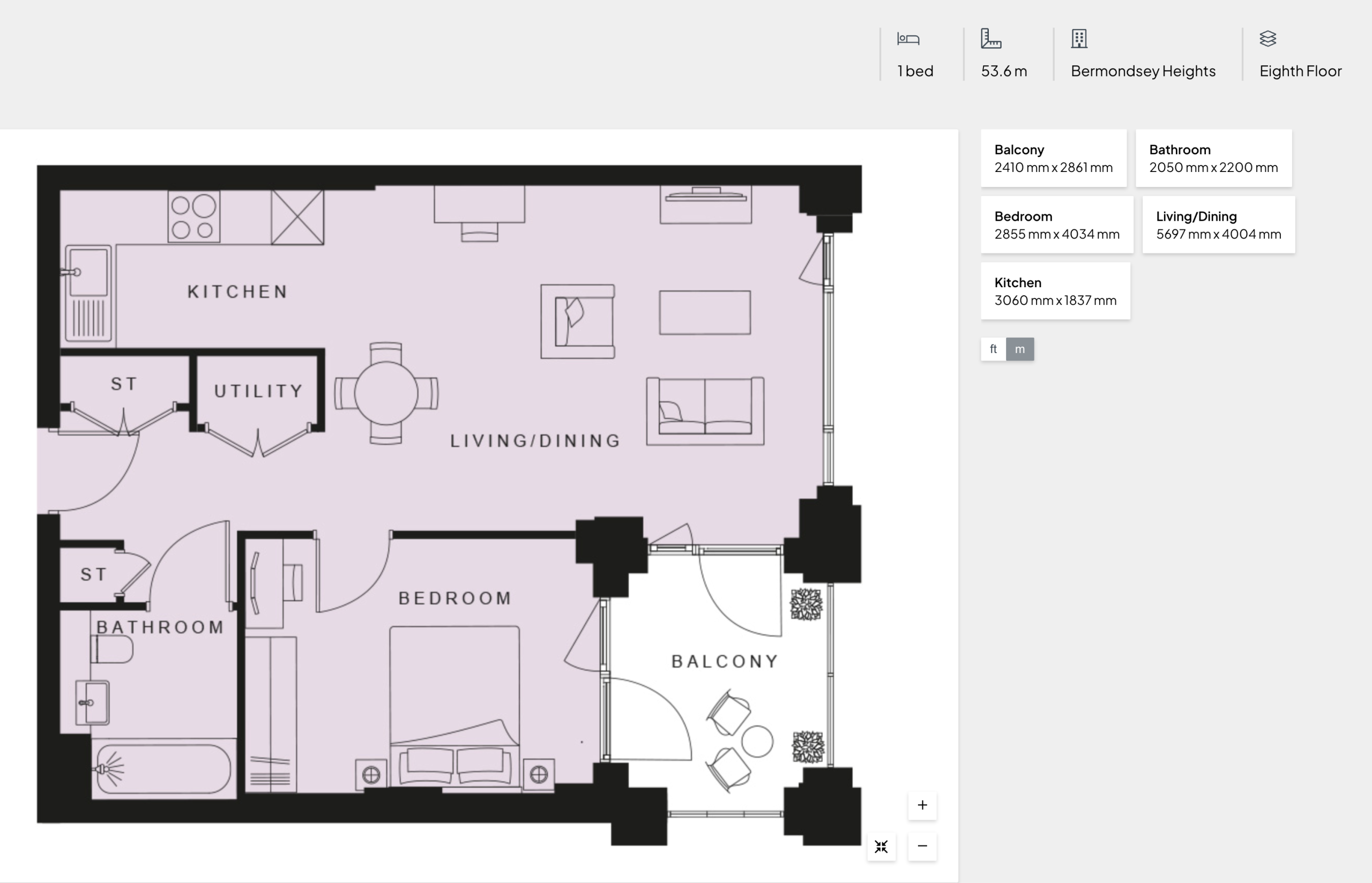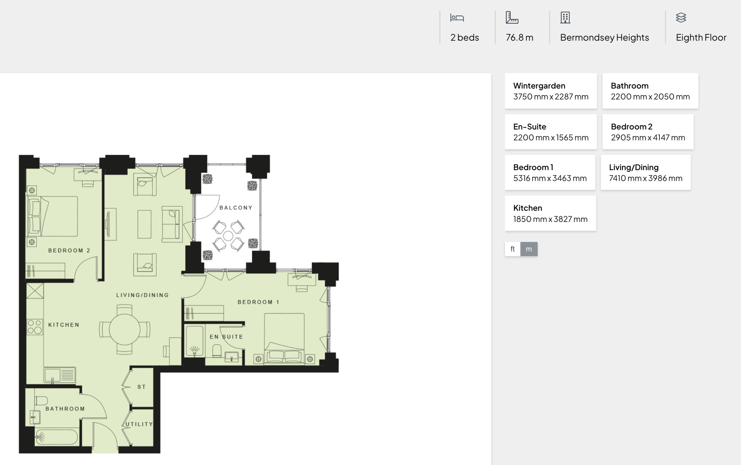 22ft private balcony with London views