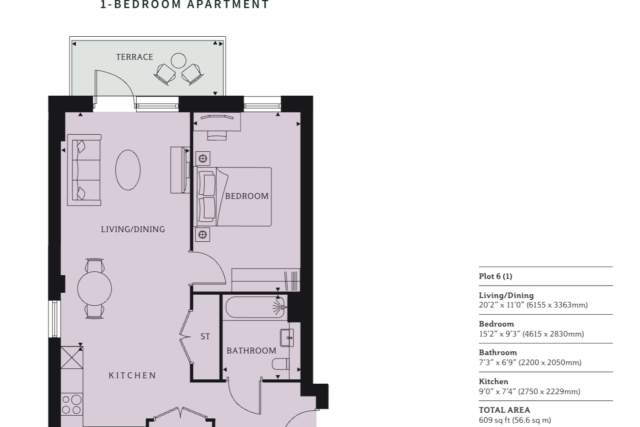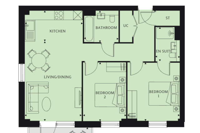 2-bedroom apartment, £449,000 Total area: 694 sq ft (65 sq m)