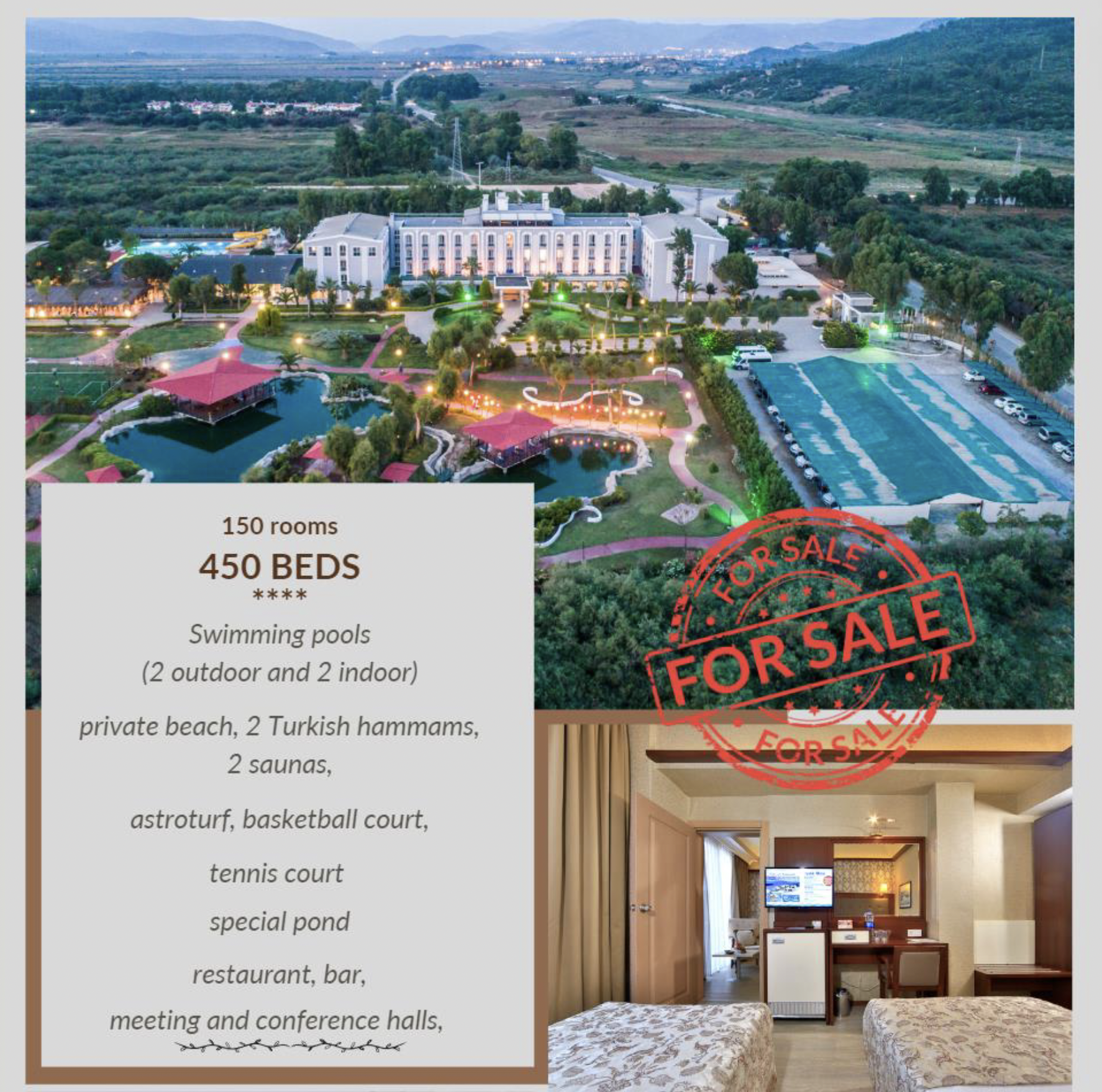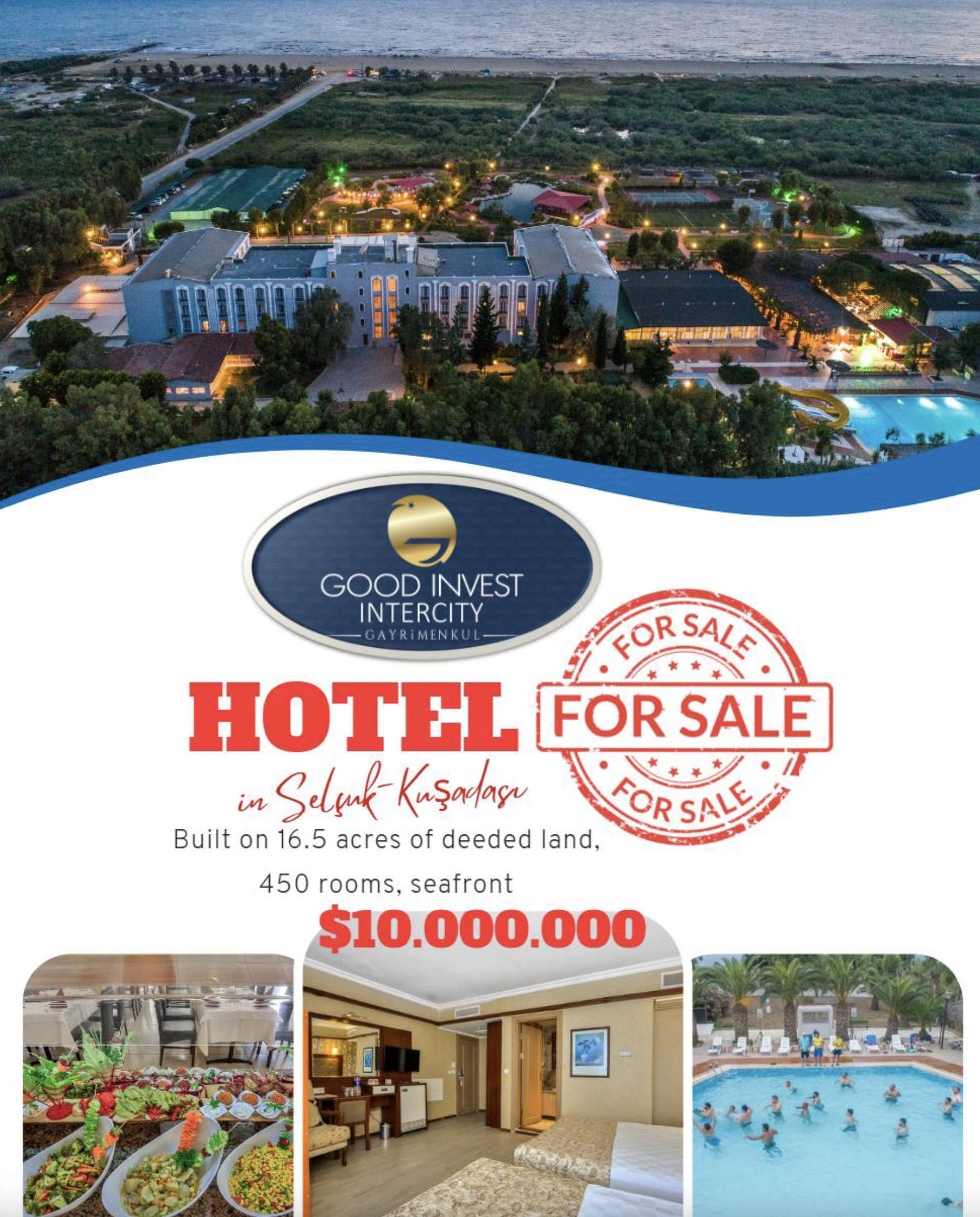 Embrace the allure of the Aegean coast with this extraordinary offering – a sprawling hotel nestled along the longest and most sought-after shoreline in Selçuk-Kuşadası. Spanning 16,500m² of titled land, boasting a private beach and accommodating 450 guests, this idyllic retreat is enveloped by the tranquil embrace of the sea in front and verdant forests behind.