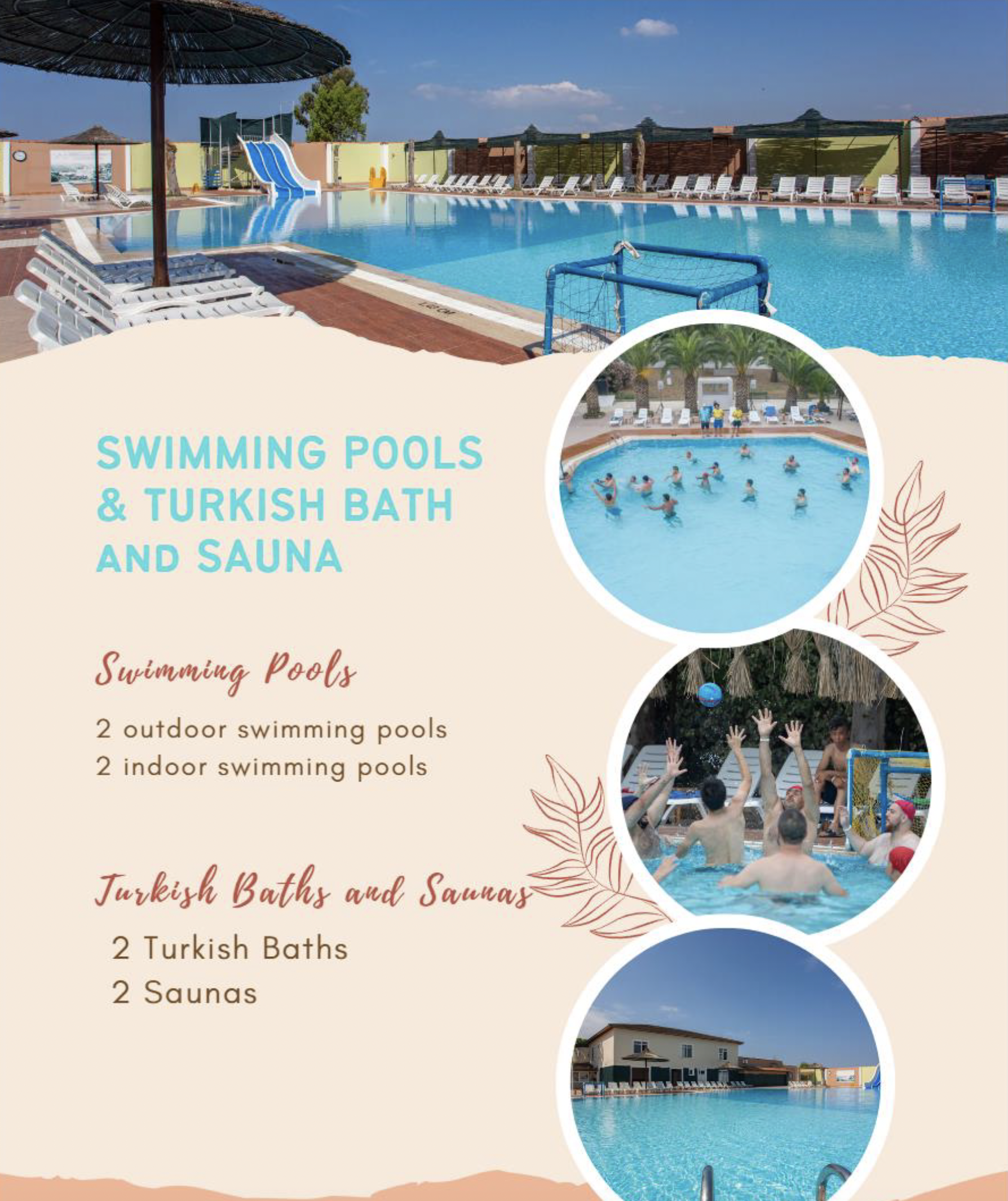 • 2 outdoor and 2 indoor swimming pools