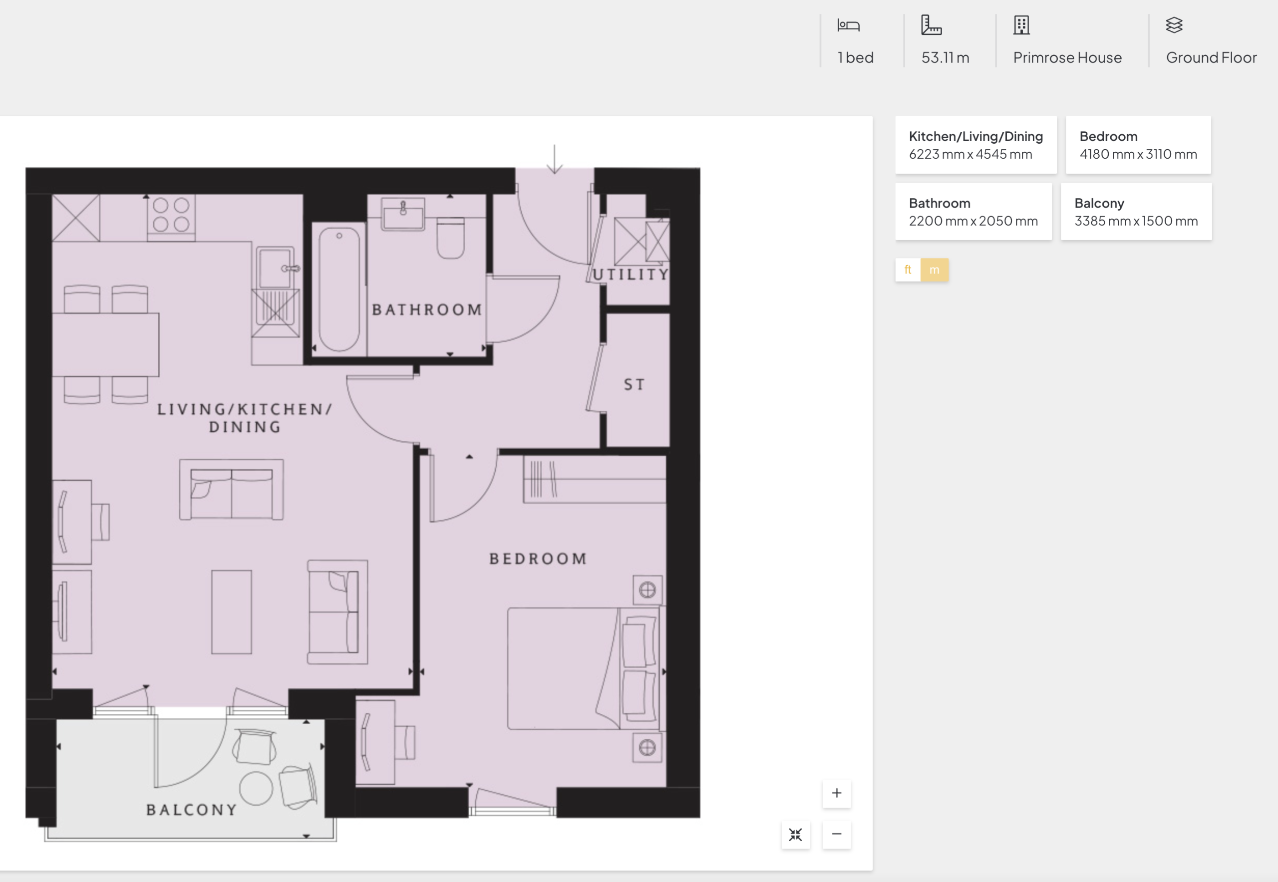 - Toplam alan: 568 sq ft / 52,75 sq m